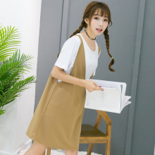 2017春夏新款背心裙两件套韩版中长款宽松胖MM套装裙白色打底衫女