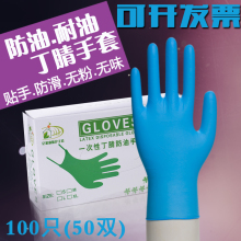 加厚A级蓝丁晴防油耐酸碱橡胶乳胶一次性手套家用务耐油手套包邮