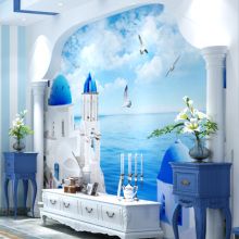 地中海壁画 3D立体海景无纺布卧室客厅电视背景墙壁纸儿童房墙纸