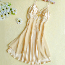 丝质吊带睡裙女夏季蕾丝性感冰丝带胸垫睡衣女夏天真丝睡裙家居服