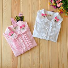 童装女童长袖衬衫贝蕾地纯棉打底衫春装2017儿童装全棉衬衣韩版白