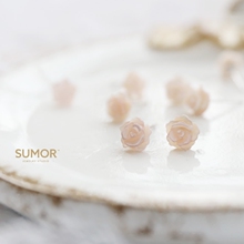 自制天然粉贝壳纯银耳钉女手工雕刻玫瑰花三生三世桃花粉耳饰包邮