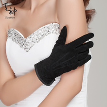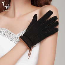 天神 时尚秋冬女士真皮保暖修手手套 优质猪反绒皮手套