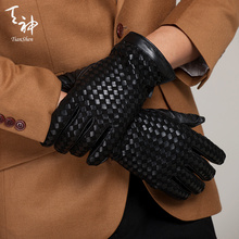 天神 男士进口羊皮 手工编织秋冬保暖防寒真皮情侣手套