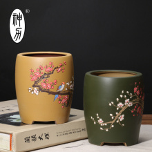 神力宜兴新款热卖紫砂原矿手工桌面地面 古典刻绘竹节漂口兰花盆