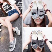 春夏女鞋韩版休闲一脚蹬平底眼睛睫毛亮片乐福鞋百搭单鞋懒人鞋子