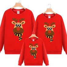 亲子装2017款秋冬装圣诞节麋鹿一家三口装全家装加绒加厚红色卫衣