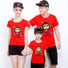 猴年亲子装夏装2017新款一家三口短袖T恤猴子全家大码母子母女装