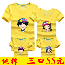 亲子装夏装一家三口2016款夏季亲子半袖卡通纯棉休闲亲子短袖T恤