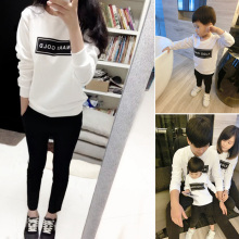 韩版2017新款亲子春装秋印花字母一家三口全家装母女休闲长袖卫衣