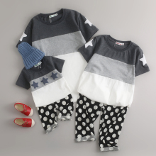 亲子装韩国2017夏季新款潮五角星印花一家三口全家装休闲短袖T恤