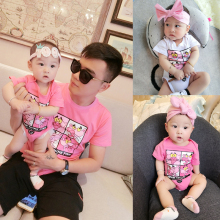 亲子装2017夏款新生儿爬服母子母女装一家三口四口全家装婴儿短袖