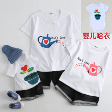 2017夏季韩国亲子装一家三口母子母女父子纯棉家庭全家装短袖T恤