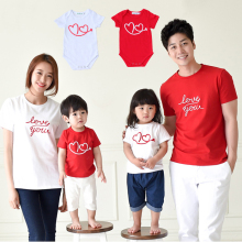 韩版亲子装2017夏装一家三口i love you全家福短袖T恤旅行拍照服