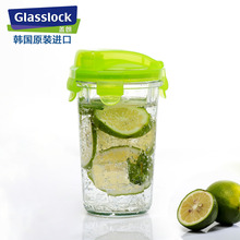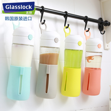 原装进口GLASSLOCK钢化玻璃杯韩国摇摇杯便携水杯茶杯带盖500ml
