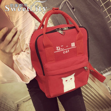 2016新款日系帆布双肩包女学院风中学生书包夜光猫印花大容量背包