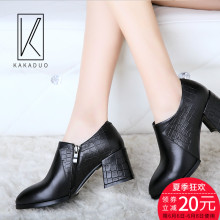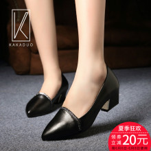 卡卡多春季女鞋新款高跟鞋真皮粗跟深口单鞋女圆头女士皮鞋休闲鞋