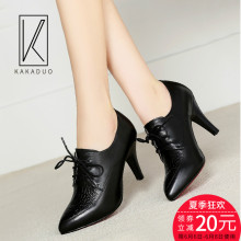 卡卡多 鞋子女新款高跟鞋春季单鞋女真皮尖头细跟系带女鞋皮鞋女