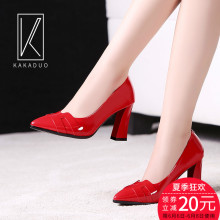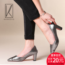 卡卡多女鞋尖头浅口真皮鞋子高跟新款粗跟单鞋女春高跟鞋皮鞋单鞋