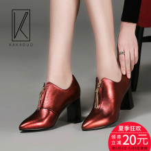 高跟鞋2017春季新款深口单鞋真皮欧美时尚女鞋尖头粗跟高跟女鞋子