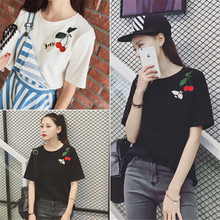 短袖T恤女夏季韩范白色半袖体恤韩国学生宽松百搭圆领半袖上衣服