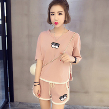 韩版睡衣女生夏天宽松休闲短袖短裤运动两件套可爱夏季家居服套装