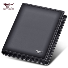 正品七匹狼钱包男短款真皮竖款学生皮夹子男式光面牛皮小钱夹青年