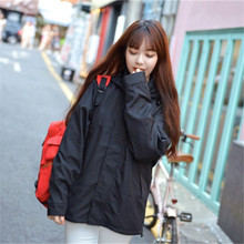 原宿bf学院风复古纯色大码工装风衣街拍学生连帽显瘦夹克外套女