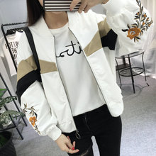 2017韩国大牌重工刺绣百搭夹克外套三色拼接立领宽松休闲棒球服女
