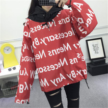 2017韩国复古印花长袖宽松连帽棒球服原宿BF套头口袋薄款外套女潮