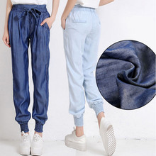 天丝牛仔裤女薄夏季九分裤松紧腰宽松哈伦萝卜带女式高腰9分薄款