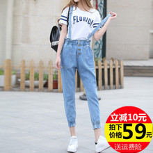2017春夏新款牛仔背带裤女九分裤春秋百搭宽松韩版学生裤 可拆卸