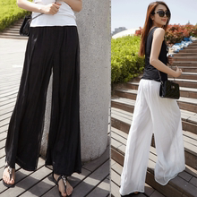 天天特价夏新款雪纺百褶阔腿裤 不对称休闲高腰长裤 沙滩裤大码裙