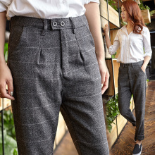 2017新款哈伦裤女格子女裤九分裤高腰休闲裤春装裤子女西裤女宽松