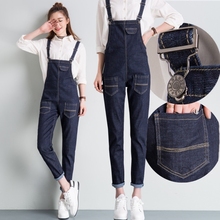 2017可爱学院风牛仔背带裤春秋女韩版学生2016新款宽松百搭九分裤