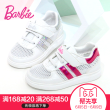 芭比童鞋女童运动鞋春新款2017网鞋夏公主小白鞋网面白色儿童鞋子