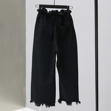 早秋新款韩国ulzzang做旧毛边裤脚宽松阔腿裤女九分裤直筒牛仔裤