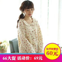 2017新款睡衣女春秋纯棉长袖开衫薄款全棉纱布家居服春款甜美可爱