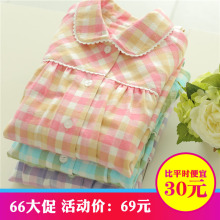 睡衣女春秋纯棉纱布长袖套装薄款全棉格子家居服夏季韩版甜美可爱