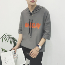 夏季宽松短袖连帽卫衣男韩版潮流帽衫男学生休闲运动外套男上衣