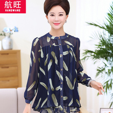 妈妈装夏装雪纺衫大码中老年女装夏装上衣长袖t恤中年人打底衬衫