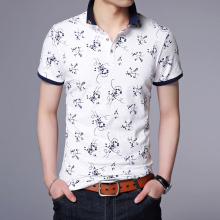 夏装短袖男 t恤翻领小满花印花POLO衫韩版修身半袖潮男装体恤衣服