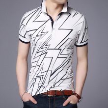 夏季t恤男短袖翻领韩版修身几何印花体恤青年潮流男装立领polo衫
