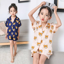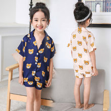 儿童睡衣夏季短袖男童女童空调服绵绸家居服套装薄款3-5岁7-9周岁