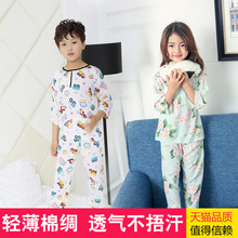 儿童家居服套装绵绸夏季睡衣男童女童中大童空调服人造棉7-9周岁