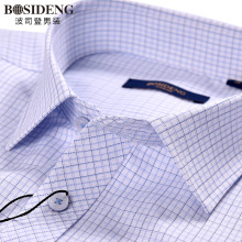 波司登商务正装长袖衬衫男纯色蓝色格子青年休闲中年爸爸装衬衣春