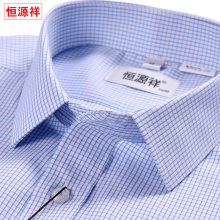 恒源祥男格子短袖衬衫商务正装青年蓝色棉中年爸爸装休闲半袖衬衣