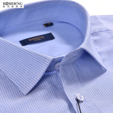 17春秋海螺衬衫男士长袖纯棉免烫高支纱蓝色细条纹商务男式衬衣