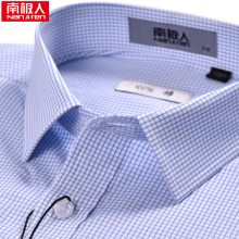 南极人男士长袖衬衫春纯棉抗皱浅蓝色格子商务休闲上班正工装衬衣