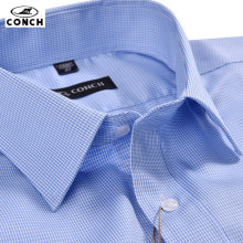 海螺衬衫男长袖蓝格子纯棉免烫中年商务正装中老年爸爸装休闲衬衣